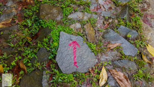 Tanda Panah merah yang terukir di batu sebagai penunjuk jalan menuju Pos 2