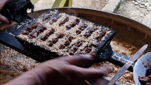 Sagu Gula siap untuk ditutup daun pisang