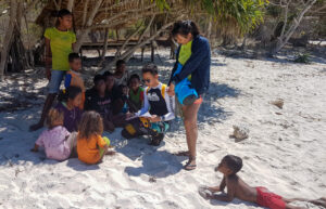 Mengisi buku tamu sebelum pulang